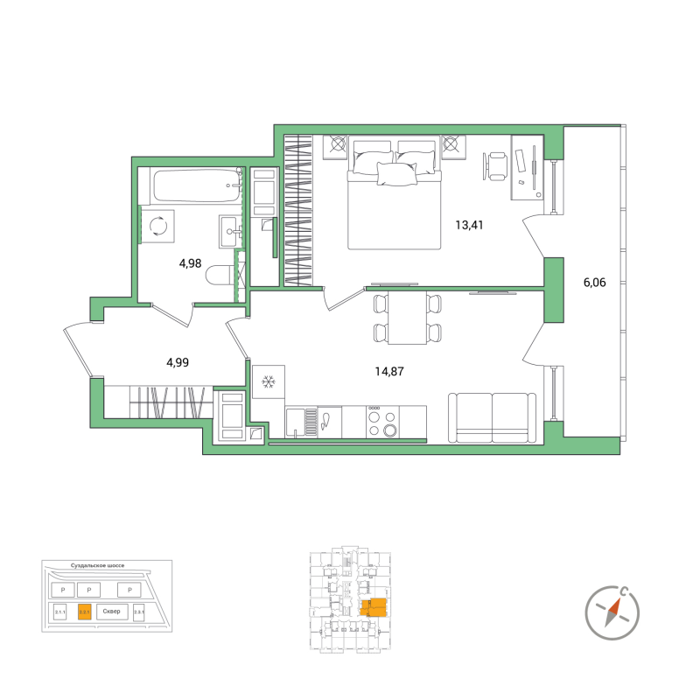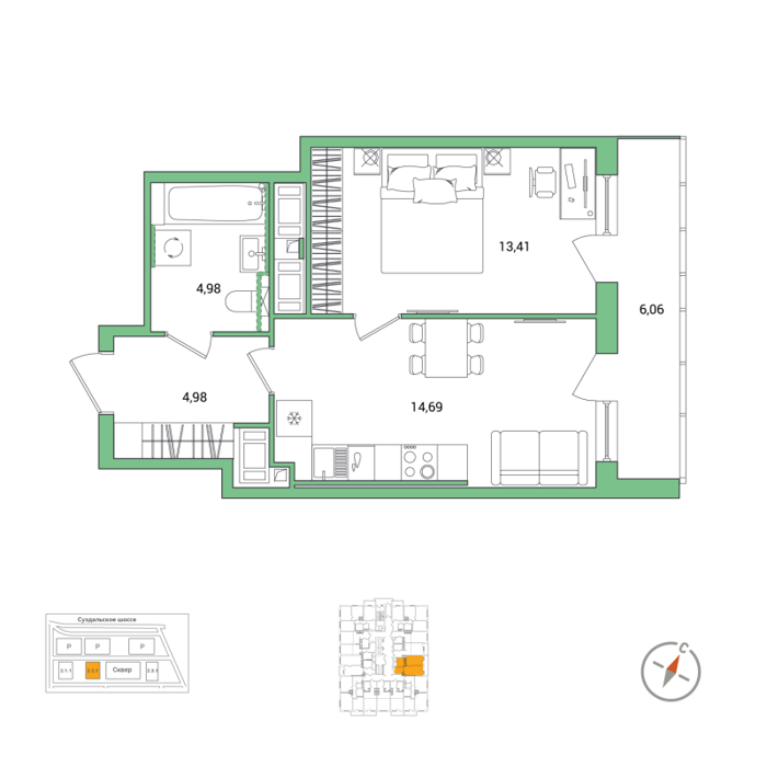 Рядом с комплексом находятся удобные выезды на КАД, Выборгское шоссе, Суздальский проспект и Парашютную улицу, благодаря которым дорога до центра города занимает около 40 минут. Всего в 6−9 минутах езды на автомобиле или общественном транспорте находятся сразу три станции метро: «Парнас», «Проспект Просвещения» и «Озерки».